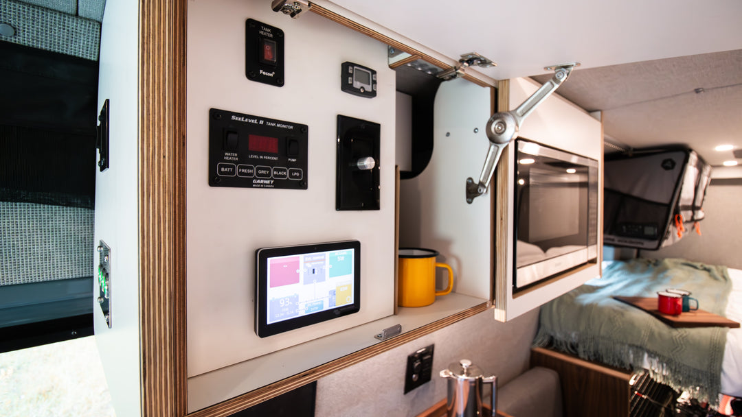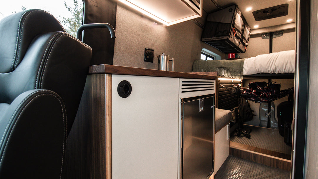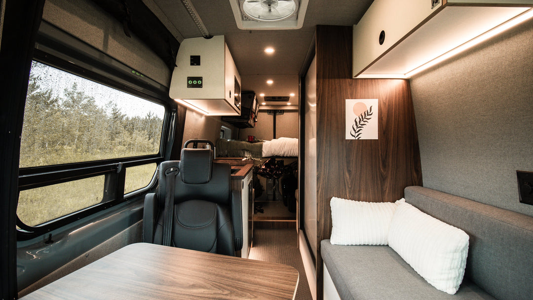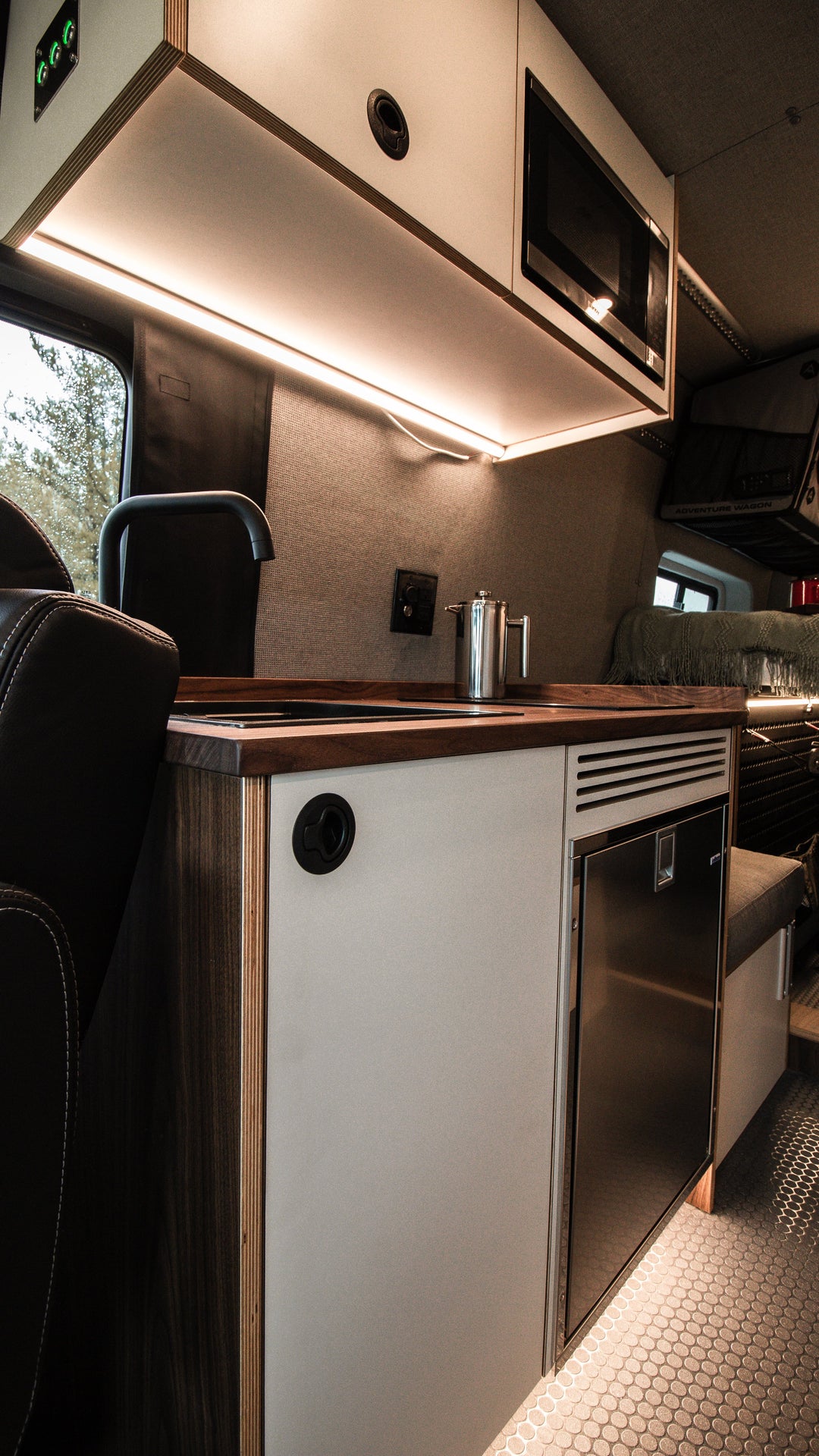 This van brings the comfort of home with you on the road. The HVAC and plumbing systems in this van are top-notch. Featuring a diesel-powered Bison Air Heater, Isotemp Spa water heater, tank level monitoring kits, a 35-gallon fresh tank, a 15-gallon gray tank, tank heater pads, 12V nomadic air conditioning, Maxxair 7500, a 24x42-inch wet bath shower, Nautilus self-cleaning shower door, OGO composting toilet, and a separate wet bath sink, you'll have all the amenities you need.
