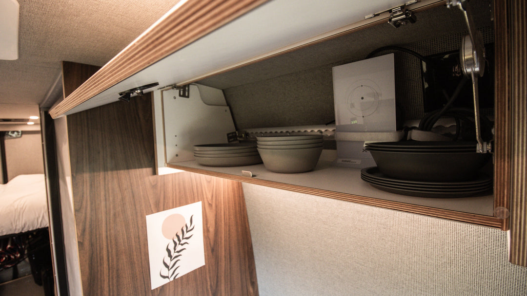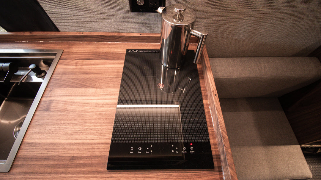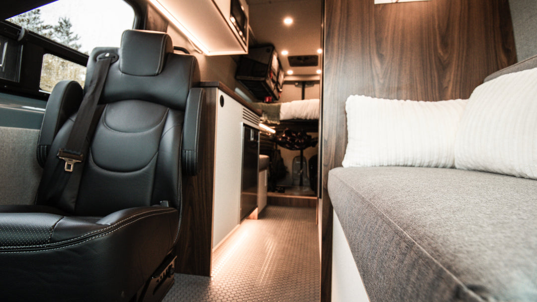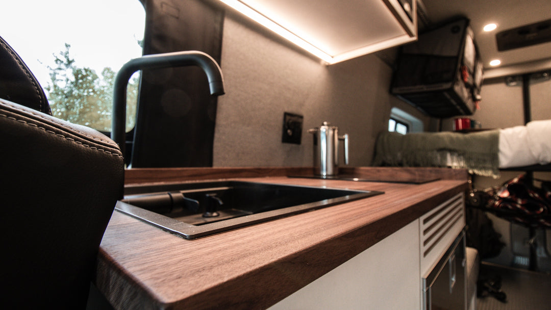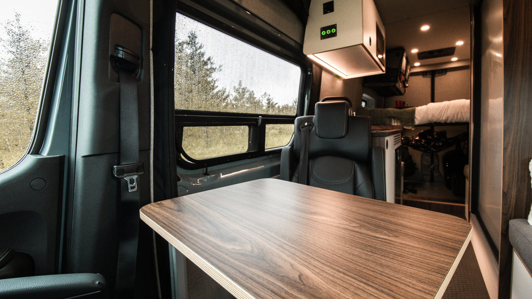 This van brings the comfort of home with you on the road. The HVAC and plumbing systems in this van are top-notch. Featuring a diesel-powered Bison Air Heater, Isotemp Spa water heater, tank level monitoring kits, a 35-gallon fresh tank, a 15-gallon gray tank, tank heater pads, 12V nomadic air conditioning, Maxxair 7500, a 24x42-inch wet bath shower, Nautilus self-cleaning shower door, OGO composting toilet, and a separate wet bath sink, you'll have all the amenities you need.