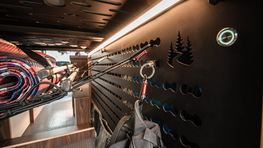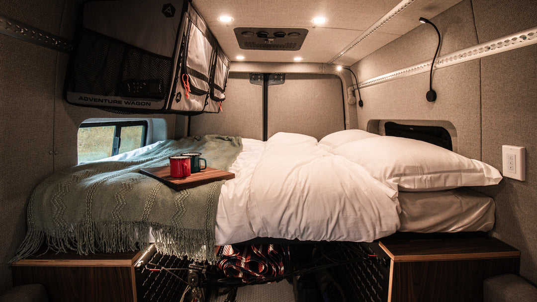 When it comes to powering your adventure, this van offers you three ways to stay charged – solar, a secondary alternator, and shore power. The 500AH lithium battery bank, 350 watts of solar power, 3 Belt 280XP High Amp Wakespeed Alternator, and Victron 3000 Watt pure sine inverter ensure you're never left in the dark. With digital display and monitoring you're in complete control of your power needs.
