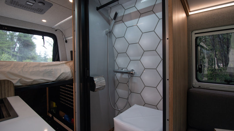 - Shower anytime you want in all 4-seasons. Our vans are designed to withstand Canadian climates.