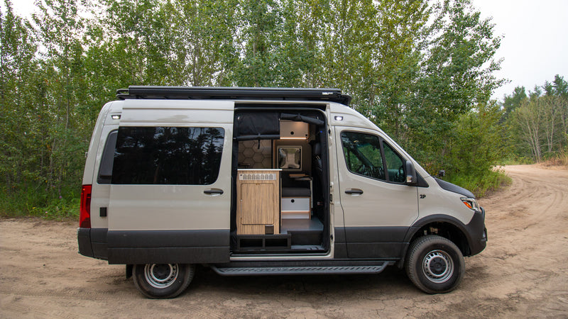 - Adventure Equipment: Add a roof rack, side ladder, Fiamma awning, all-terrain tire package, or an off-road bumper package to get your van trail-ready.