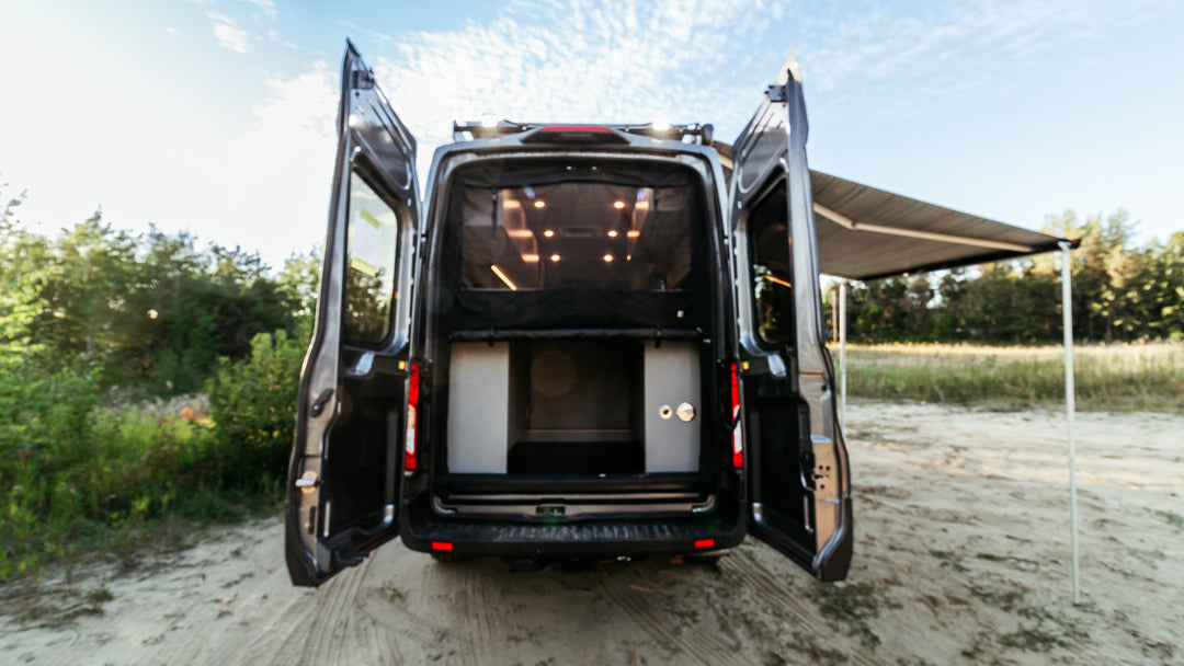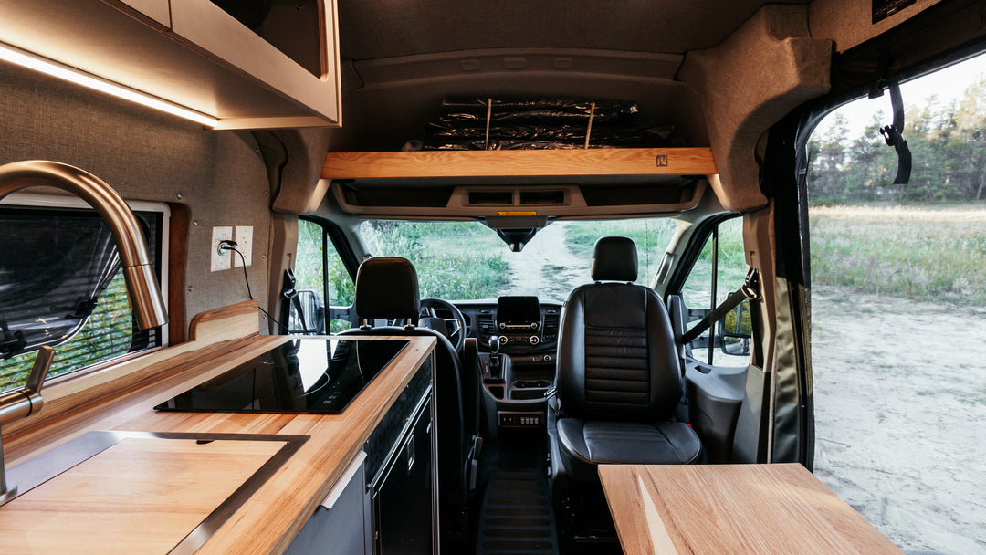 Theres more than meets the eye with this sleek Ford Transit van conversion, though. Behind the scenes, this thing can take you where most vans won't. This campervan sports an upgraded leaf spring and shock package from van compass accompanied by upgraded sumo springs.